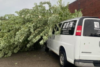 Stay 25 feet away from any down power lines and call 911 immediately.